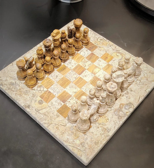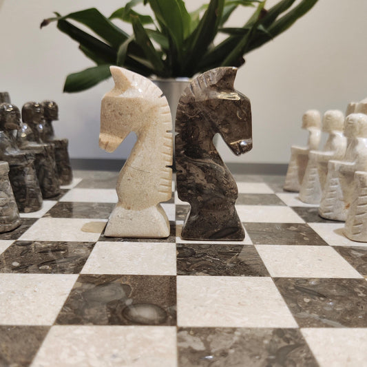 Chess | Marble Chess | Marble Chess Set | 15 x 15 inch Chess Set | Gifts for Him | Christmas Gifts | Grey & Stone Marble | Home Decor