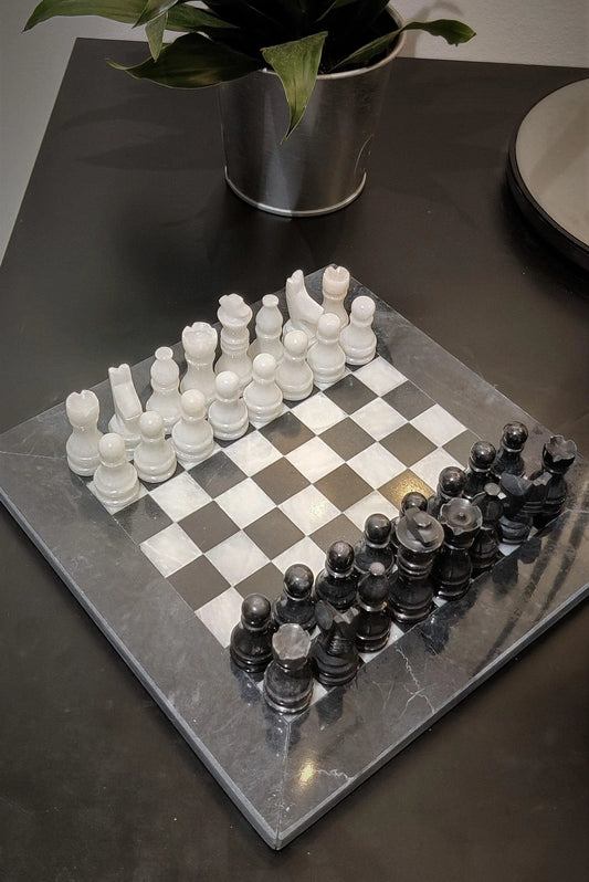 Chess Set |8x8 inch Black & White | Handmade Chess Set | Marble Chess Set | Bestselling Chess | Home Décor, Gift for dad, Coffee table Décor