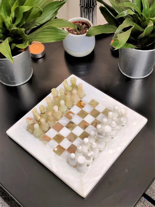 Chess Set | 8x8 inch White & Onyx | Handmade Chess Set | Marble Chess Set | Bestselling Chess | Home Décor, Gift for dad, Coffee table Décor