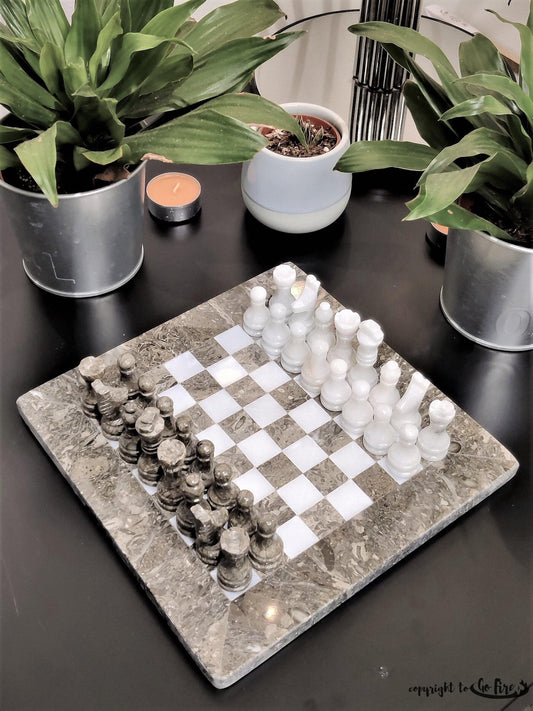 Chess Set | 8x8 inch Grey & White | Handmade Chess Set | Marble Chess Set | Bestselling Chess | Home Décor, Gift for dad, Coffee table Décor
