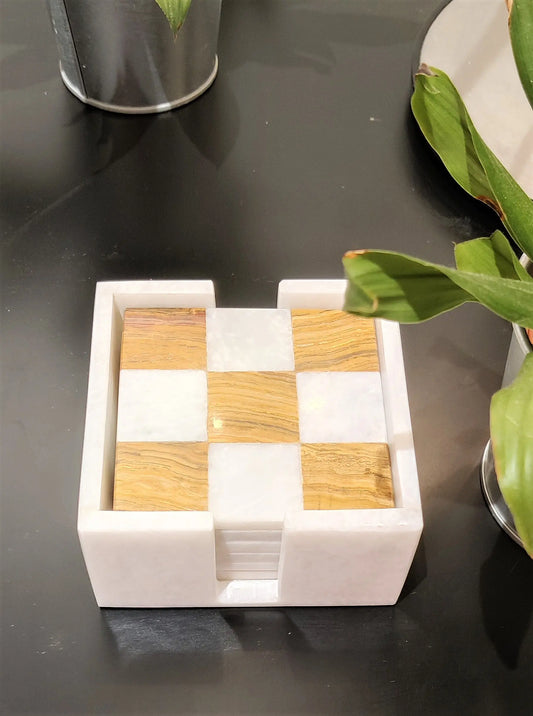Marble Coasters | Set of 6 Marble Coasters in 2 Colours Onyx Green & White | Check Design | Home Kitchen and Dining Table Decor | Home Decor