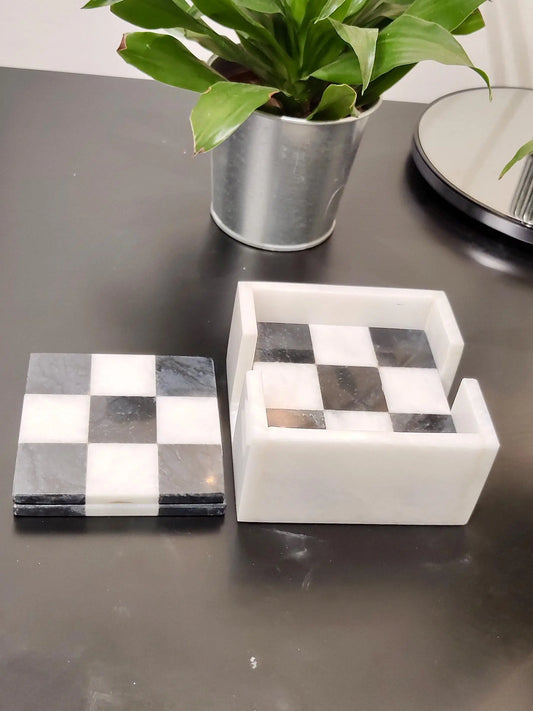 Handmade Marble Coasters Set of 6 | Black & White Check Design | Elegant Drink Coasters for Home, Kitchen & Dining Table Décor