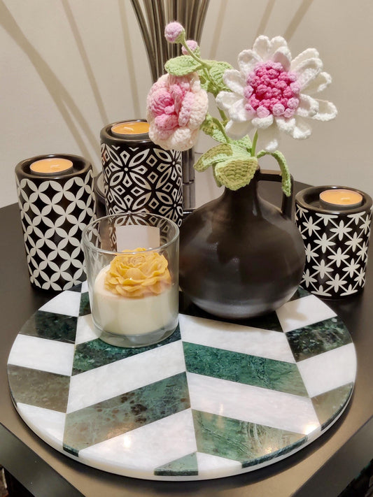 Marble Round Tray | Natural Finish Marble | Mosaic Design Tray | Home Décor | Decorative Tray | Bathroom or Kitchen | White & Verde Green