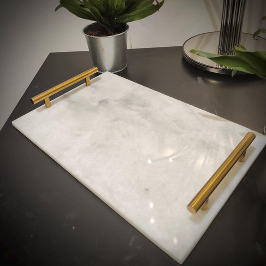 Marble Tray | Natural Finish Marble | White Tray | Home Décor | Decorative Tray | Bathroom or Kitchen | White Marble Tray with Gold Handles