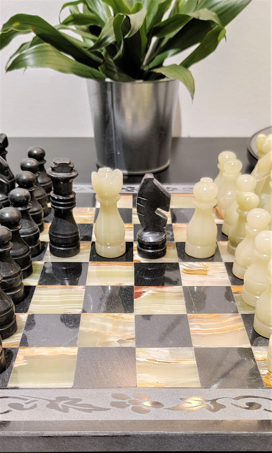 Chess Set | Marble Chess | Onyx Chess Set | Gifts for Him | Easter Gifts | Black & Onyx Marble | Home Decor