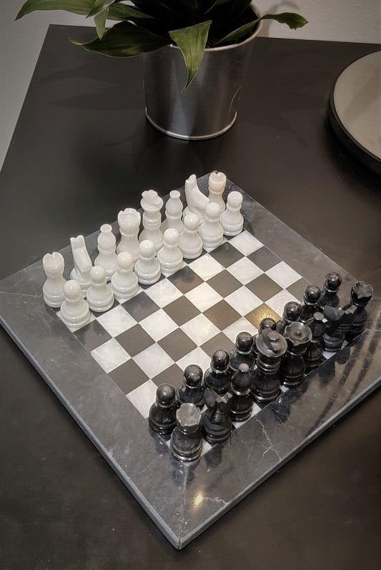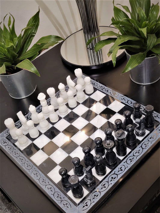 Handmade Marble Chess Set | 8x8" Black & White Onyx Chess Board | Classic Chess Game for Home Décor & Gifts