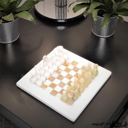 Handmade Marble Chess Set – 8x8 Inch Black & Onyx Stone Board with Pieces | Luxury Chess Set for Home Décor & Gift