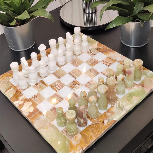 Handmade Marble Chess Set – 15x15 Inch Onyx & White Stone Board with Pieces | Luxury Chess Set for Home Décor & Gifts for Him