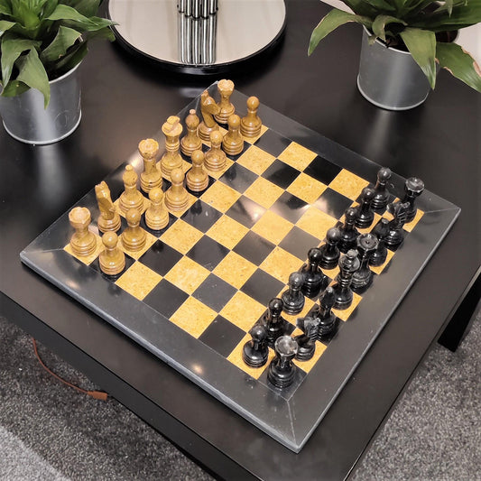 Chess | Marble Chess | Marble Chess Set | Chess Set | Gifts for Him | Christmas Gifts | Chess in Black & Golden Marble | Home Decor