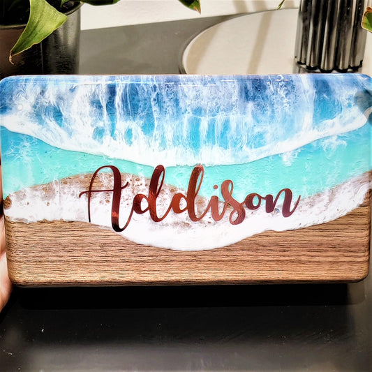 Personalized Ocean Resin Art Wooden Tray, Acacia Wood Tray, Customized Ocean Art Tray, Ocean Art Wooden Plate, Decorative Tray, Home Décor